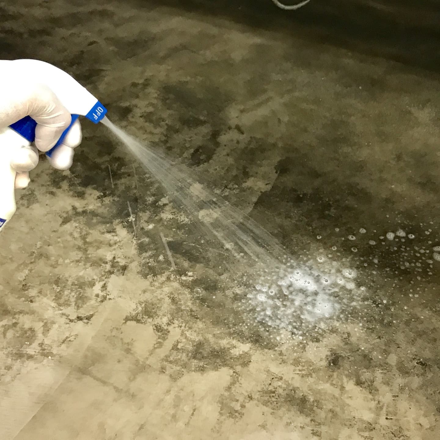②対象物にバイオナックを入れた専用ハンド泡スプレーもしくはフォームガンで(初回は原液を0~10倍、以後任意)塗布、しっかり泡を吸着