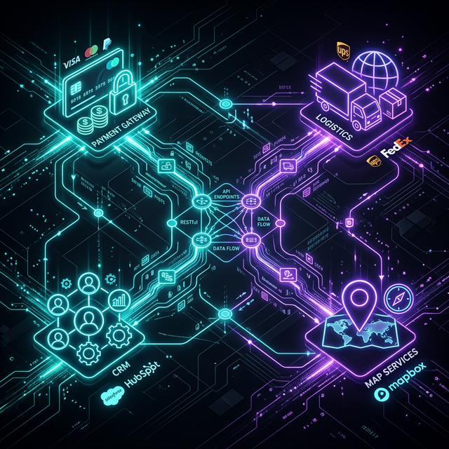 決済API・地図API・物流API・CRMツール連携など、既存サービスとのシステム統合も対応。開発コストを抑えながら機能を拡張します。